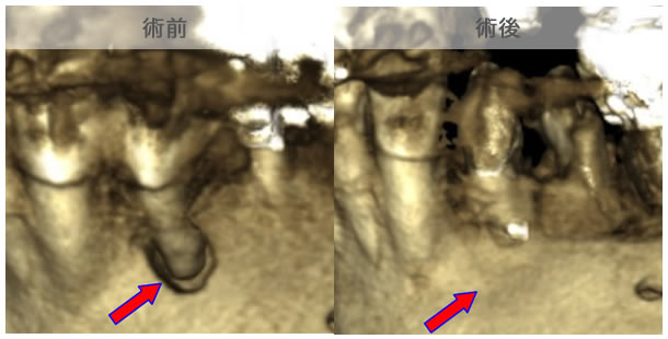 CTを使用した診断を行うことにより、歯根の解剖学的形態の把握が可能になります。