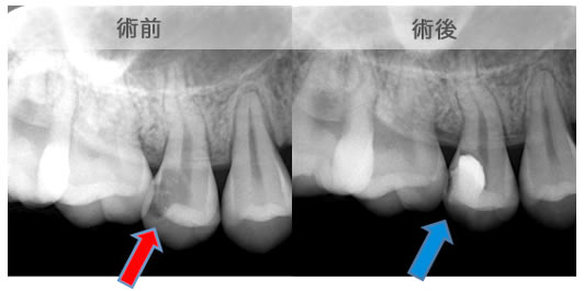 MTA根充後11ヶ月で透過像が消失し、根尖部が正常化しました。